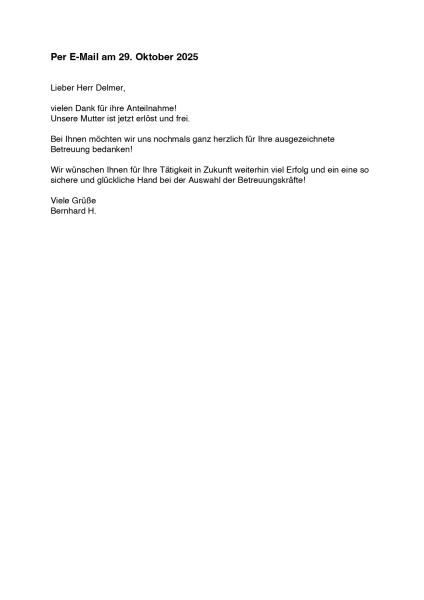 Hier finden Sie einige Rückmeldungen unserer Kunden. Es handelt sich hierbei um Danksagungen der Kunden bzw. deren Angehörigen.